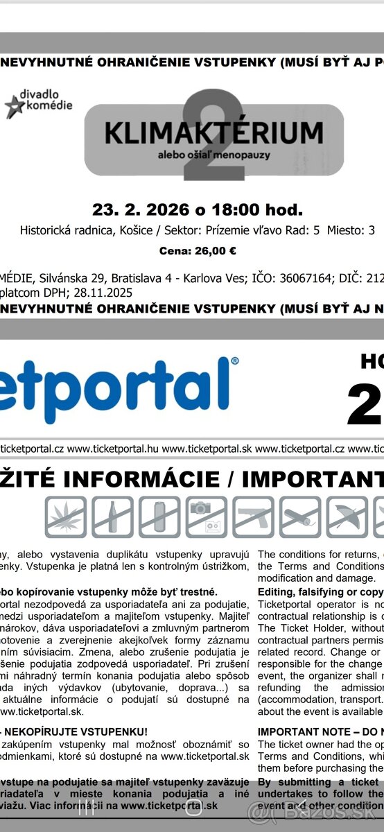 📩 Preferujem rýchlu dohodu, lístky pošlem elektronicky / podľa dohody.