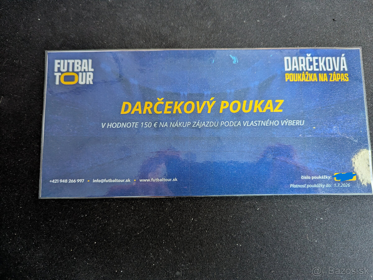 Zdravím, ponúkam na predaj túto darčekovú poukážku na zápas v hodnote 150€ od futbaltour.