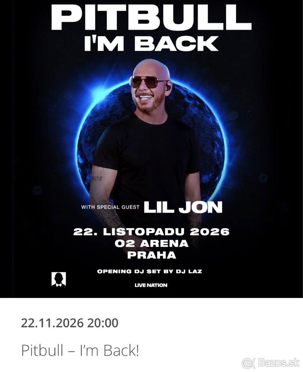 Predám 8ks lístkov na turné pitbull I’m back ktoré bude 22.11 v O2 aréne v Prahe