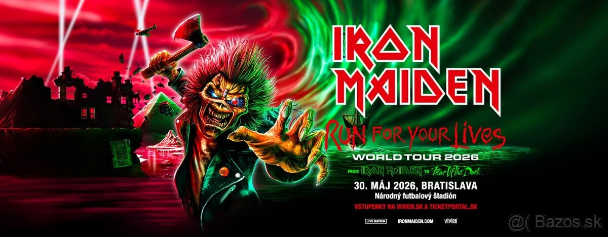 IRON MAIDEN - [15.3. 2026]Predam 3ks vtupenky na koncert IRON MAIDEN, ktorý bude 30.05.2026 v Bratislave.Vstupenky boli kupene cez ticketportal ,cena za ks - 110,- eur Sektor : B201, Rad: 14, Miesto 27, 28, 29